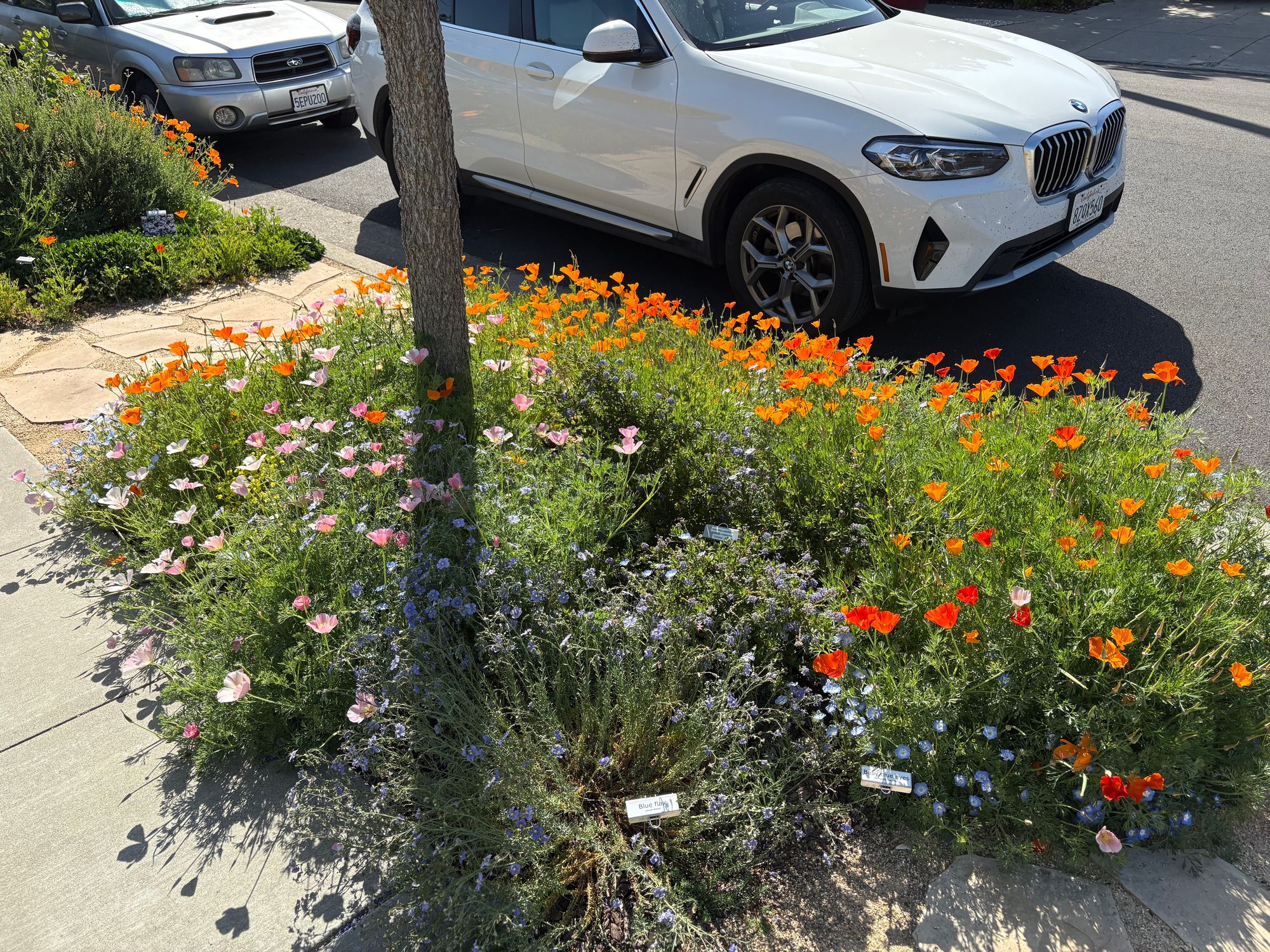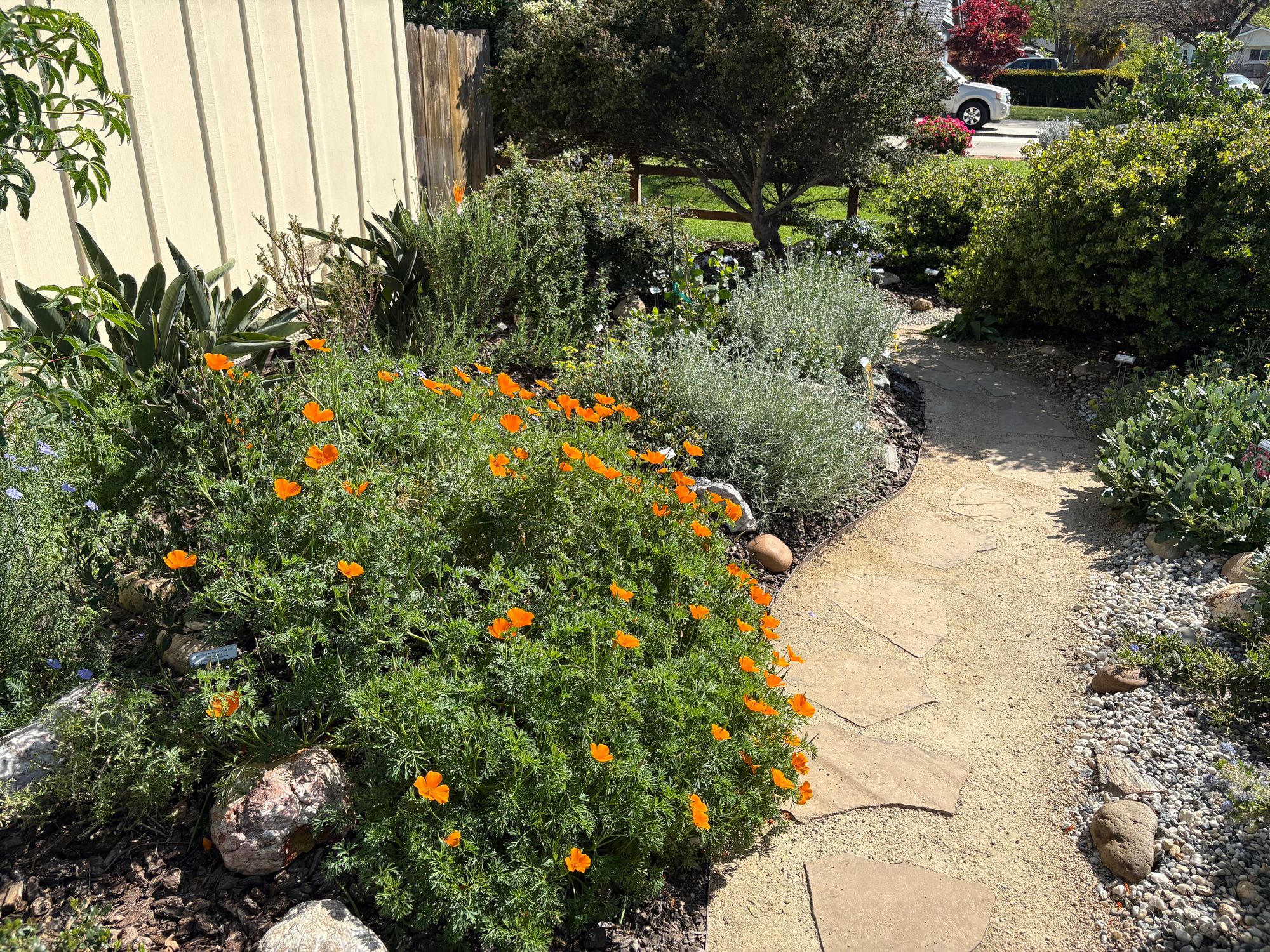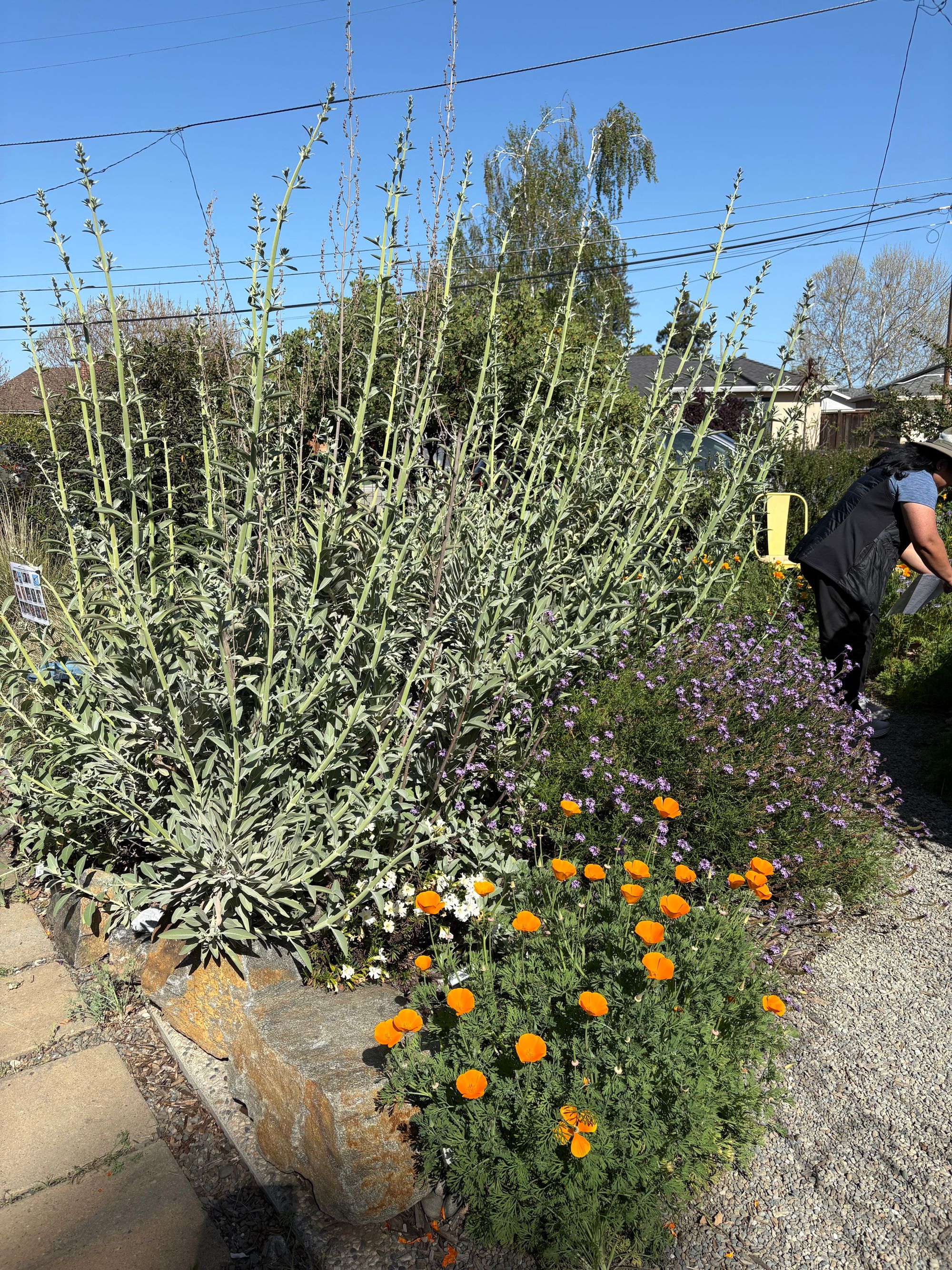 这周末去逛了两个Growing Native Garden Tour的花园, https://gngt.org/ 。如果你家院子里的植物75%以上都是加州本地植物的话,可以注册,然后在四月第一个周末,Host参观者来参观你的花园。visitor的话只需要在网站上注册,时间到了它会把garden list 地址