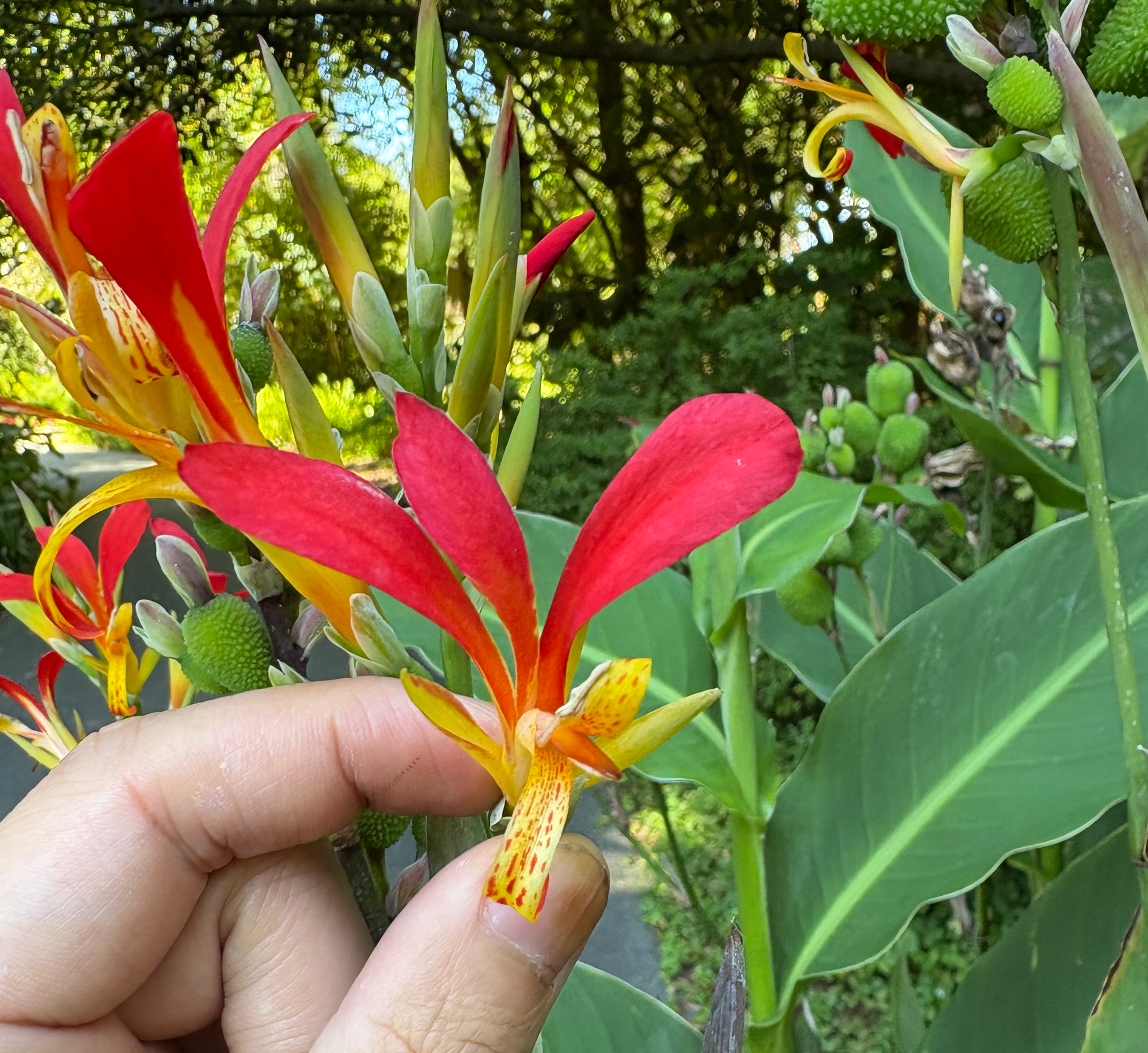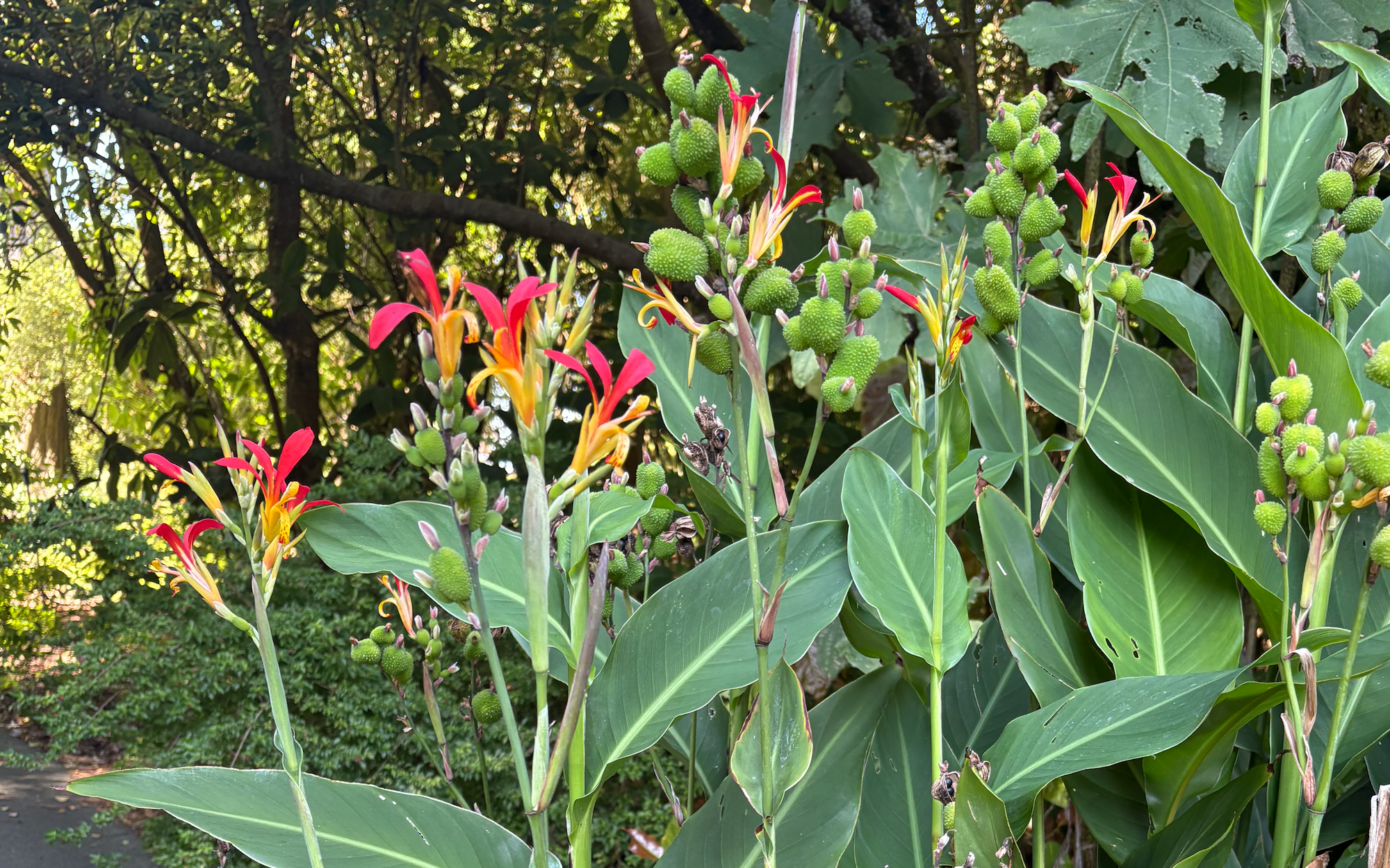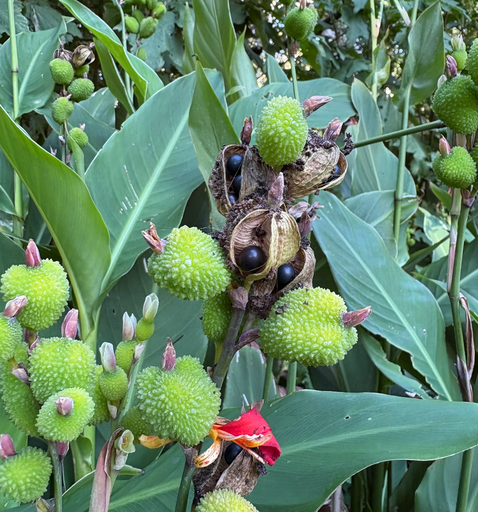 姜科植物? 花和果实都很有特点. Canna indica ,