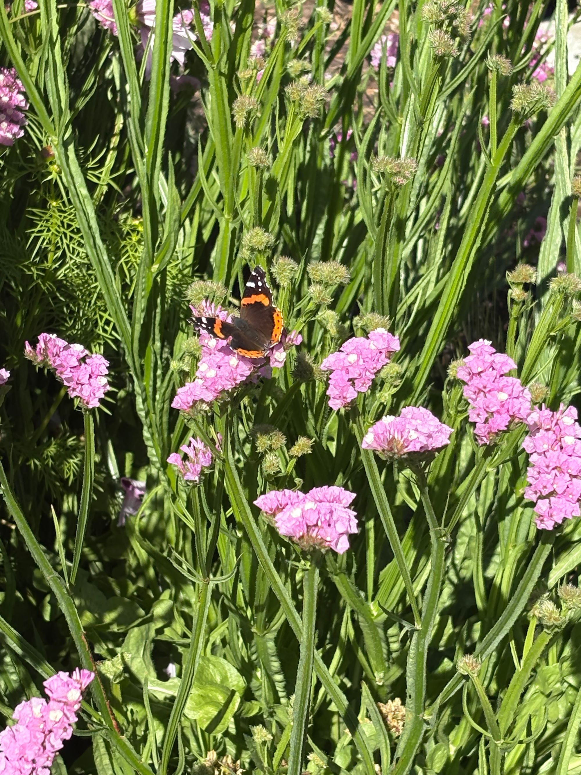 This time I got the opportunity to observe how a butterfly catching the nectars from flower one by one. It's a lot more interesting than just admiring the beauty of their wings, the color. This red admiral actually is coming to each flower, heads down, put its face into the tube of the pedals, which is perfectly aligned with the its mouth. Its attena are shiny, and sectioned, ended with a black dot in the end, like a cool guy.