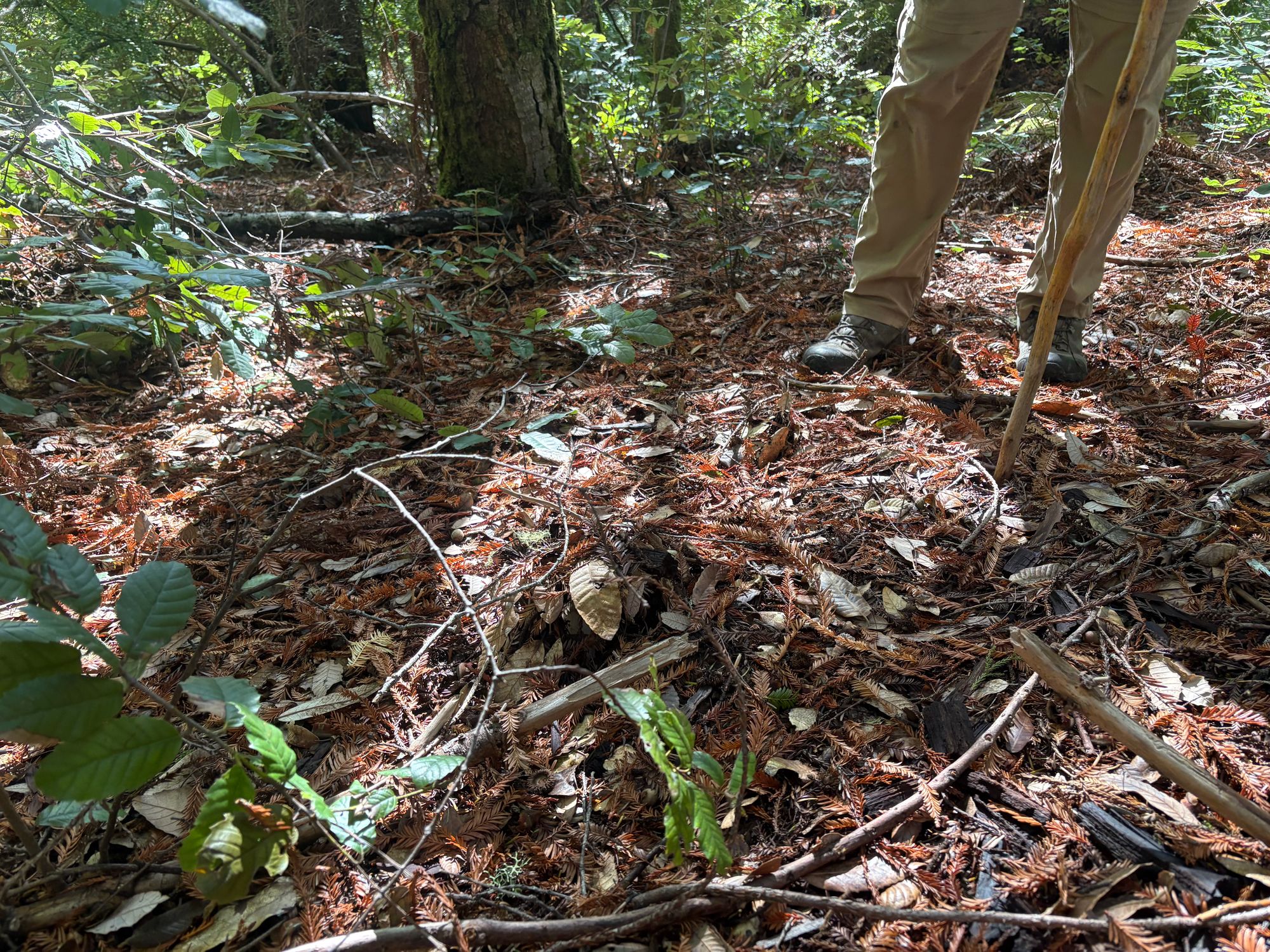 mushroom hump, also shrump, a subtle bump of soil/leaves, indicating a mushroom is growing underneath, causing the materials being lifted up a bit.