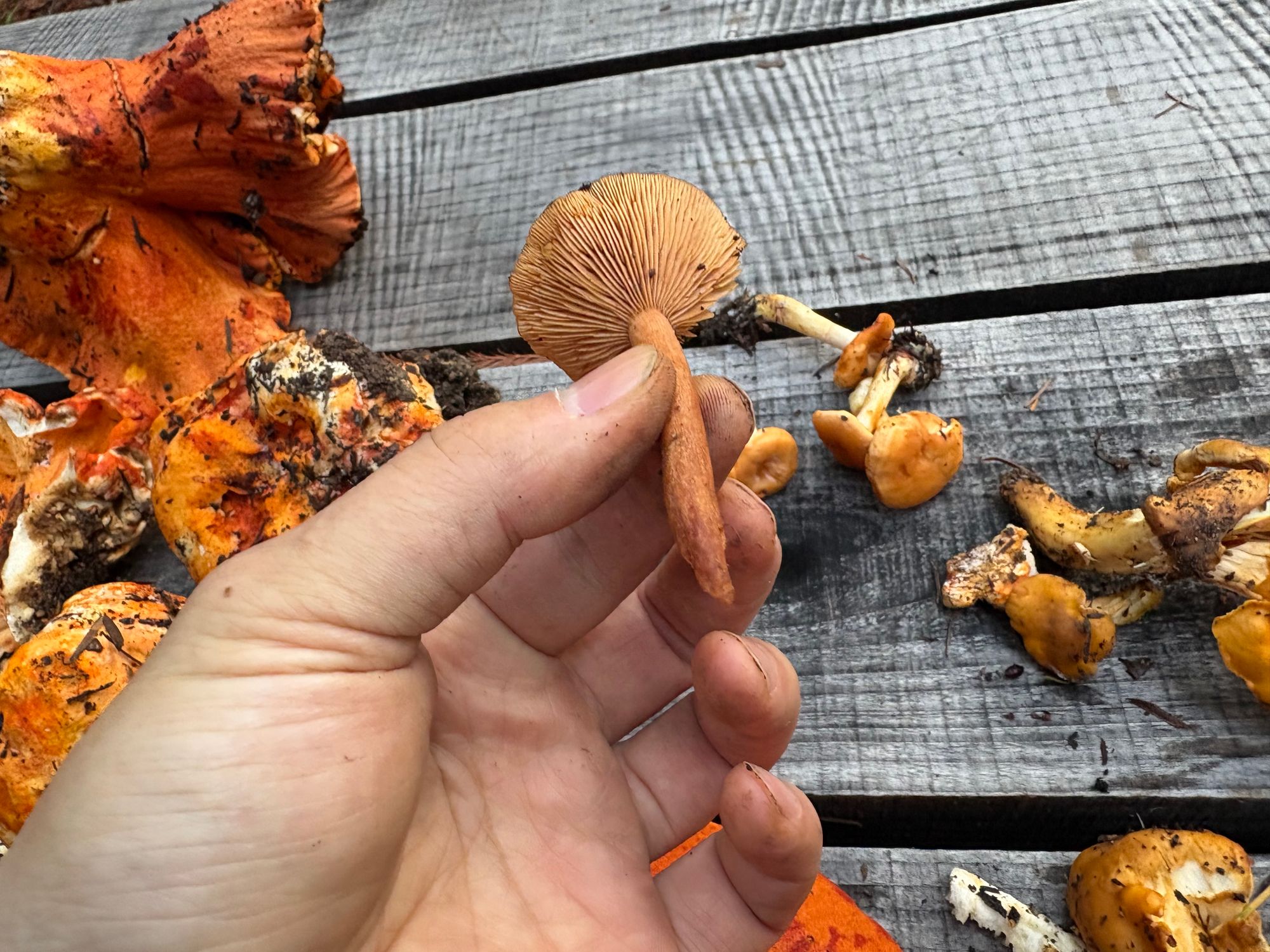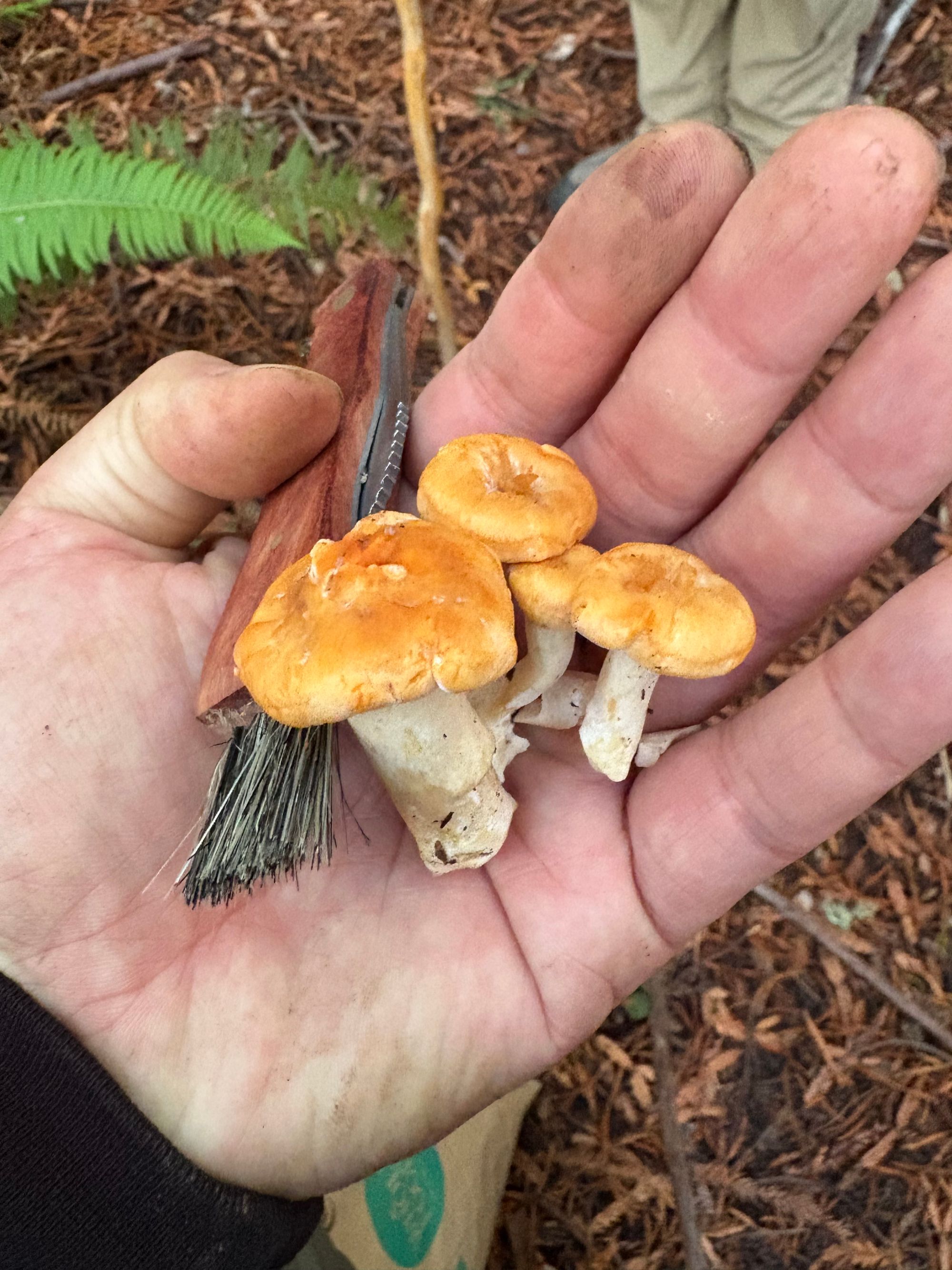 hedgehog mushroom, could be huge, david. catherine mentioned they are mycohrizial with huckleberry.