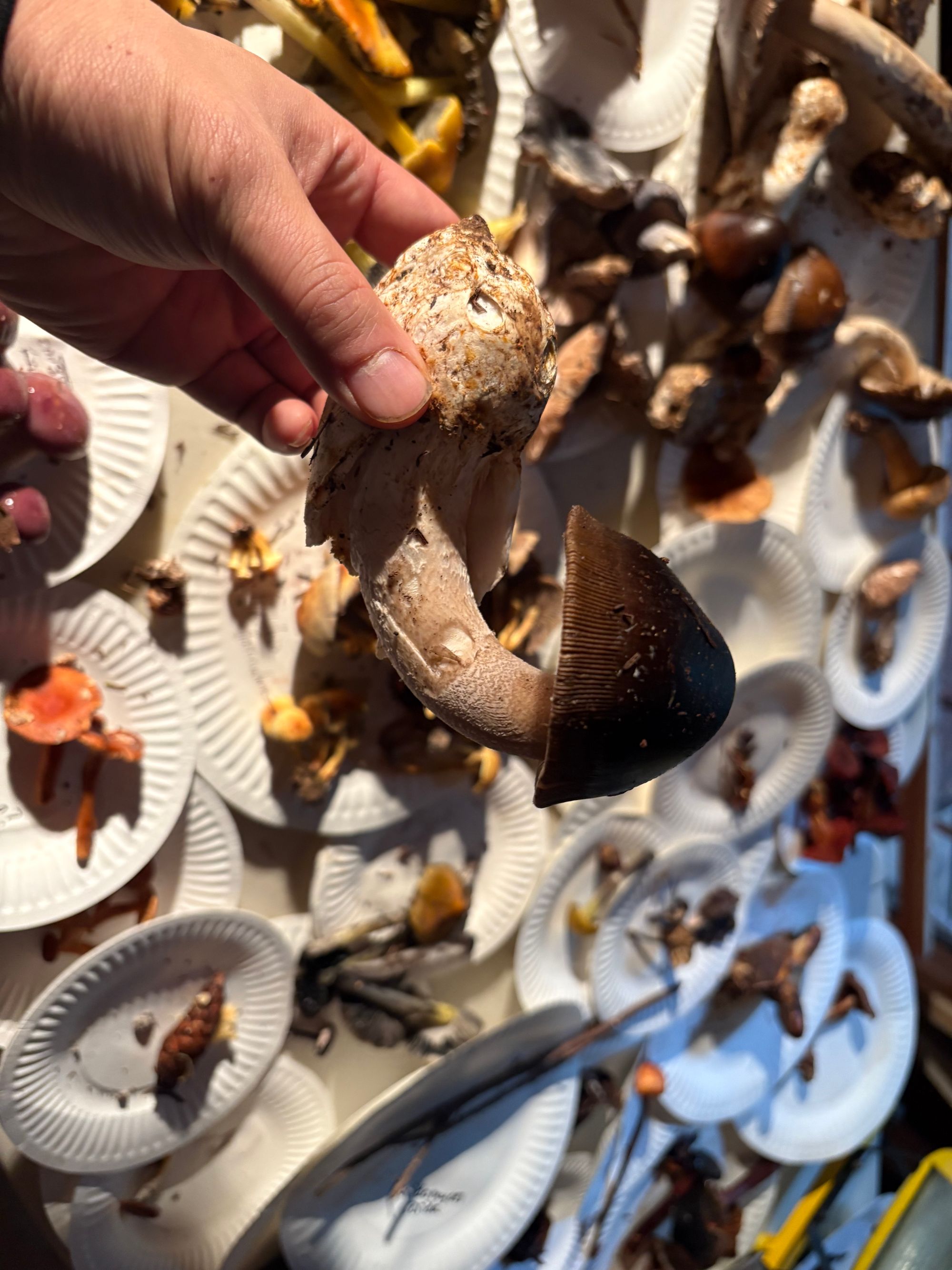 We also found some boletes. With slime and brown cap. For boletes, if they blush (changing color), especially turning blue/red, it's not harmful, but whether it's tasty is another question. In the end with ID book, I think it's suillus brevipes. edible but i didn't try.