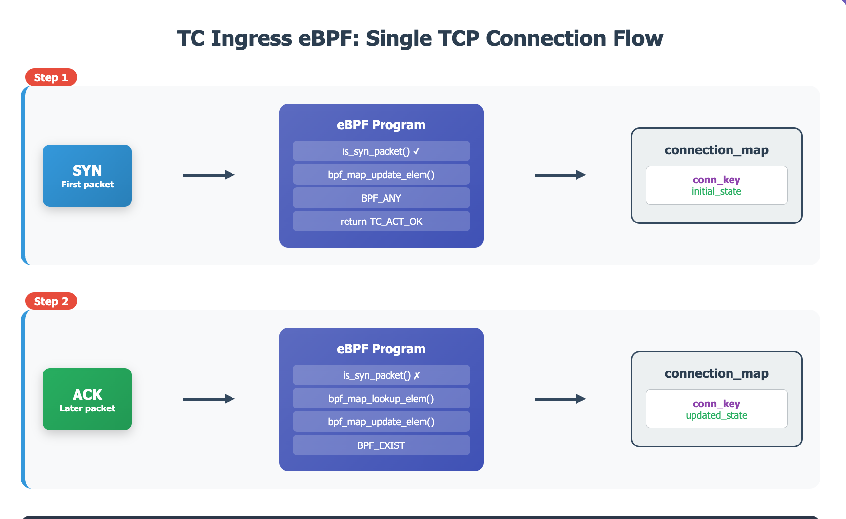 My eBPF program inspect every incoming packet, and update a hash map called connection_map.
